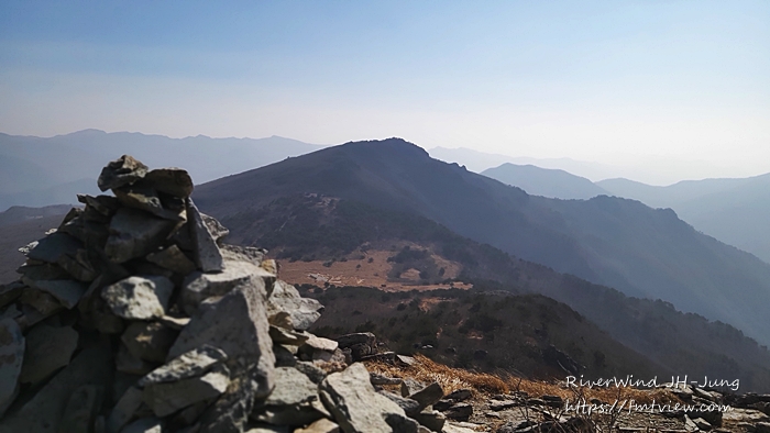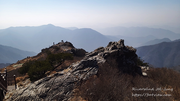 하늘에 걸린 암봉들이 멀리 아스라이 보이는 산그리매를 배경으로 정말 멋집니다.