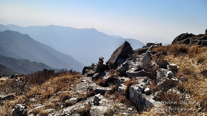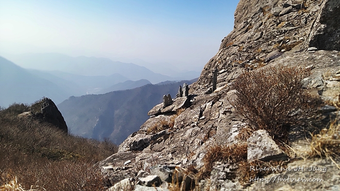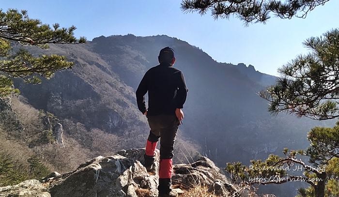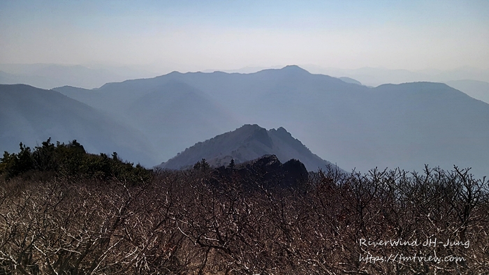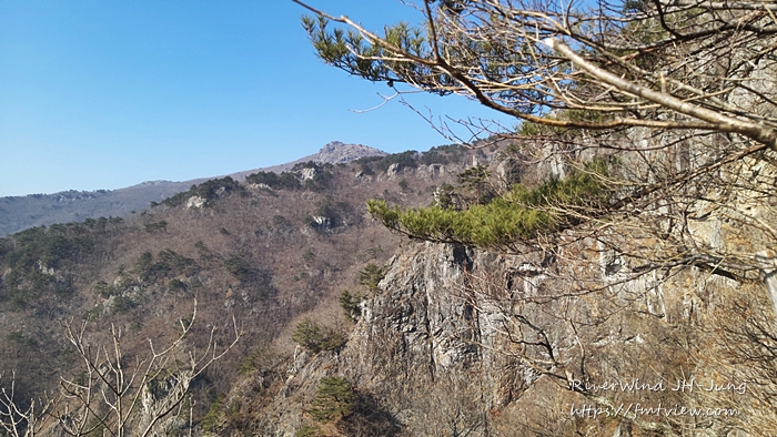 하늘에 걸린 암봉들이 멀리 아스라이 보이는 산그리매를 배경으로 정말 멋집니다.