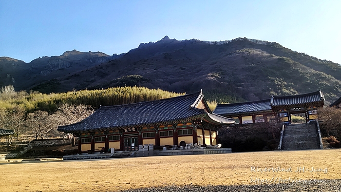 저 멀리 표충사 요사채 뒤편으로 보이는 재약산이 멋진 그림으로 펼쳐 보입니다.