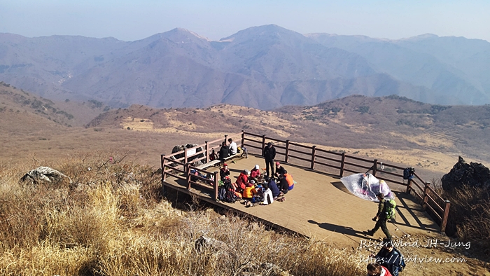 동쪽의 약 125만평에 이르는 광활한 사자평 고원지대는 영남알프스 최대의 억새군락은 억새 철이 되면 장관입니다.